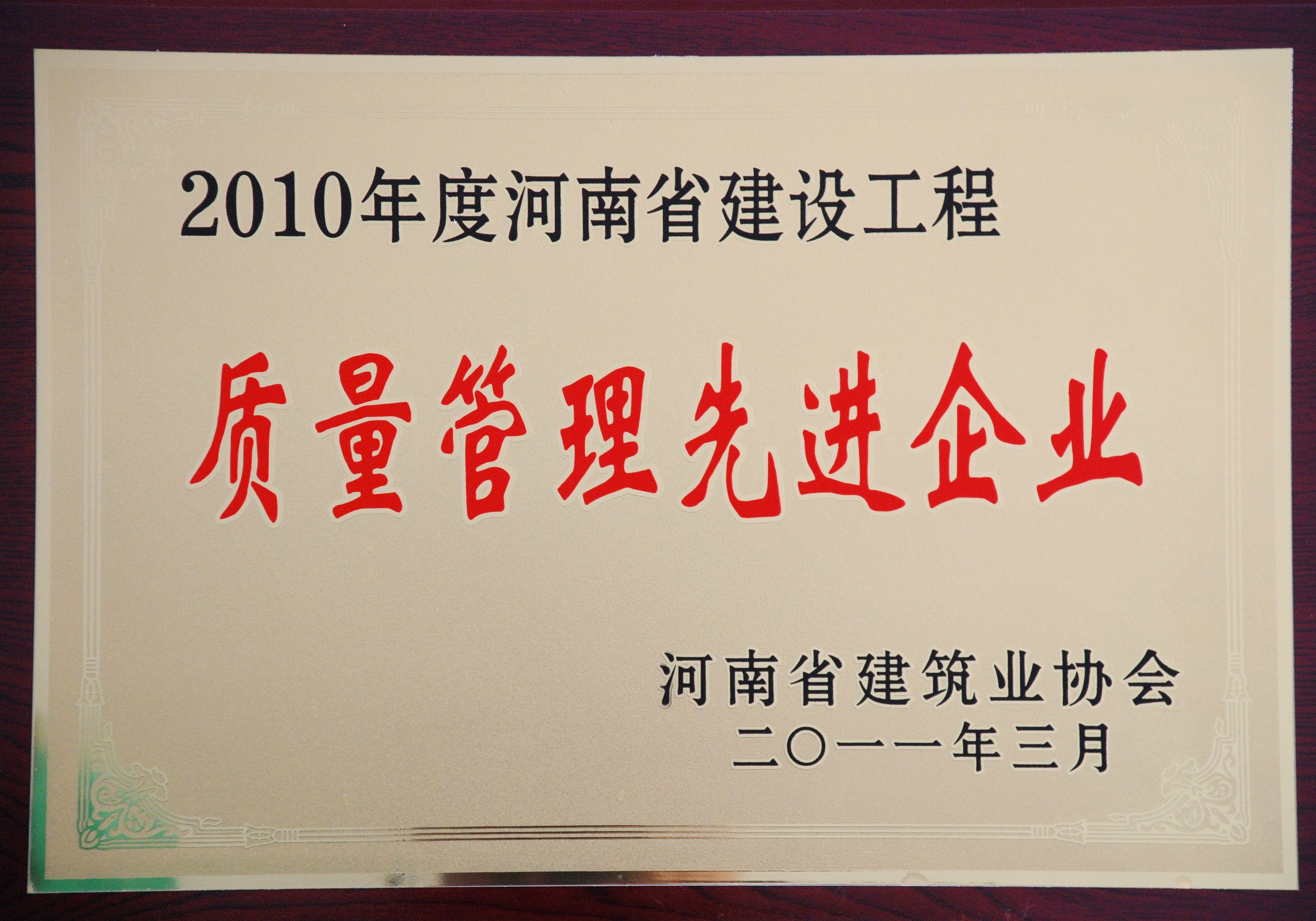 在河南省建筑業(yè)協(xié)會(huì )2011年表彰先進(jìn)大會(huì )上,我公司榮獲2010年度河南省建筑業(yè)技術(shù)創(chuàng )新先進(jìn)企業(yè)和河南省建筑業(yè)先進(jìn)企業(yè)、河南省建筑安全先進(jìn)企業(yè)、河南省建設工程質(zhì)量管理先進(jìn)企業(yè)等稱(chēng)號,公司總工程師王蘭蘭教授級高級工程師更被評為河南省建筑企業(yè)優(yōu)秀總工程師。公司項目經(jīng)理鐘新安、馮志和、王振東、張寶玉、張巍屹榮獲2010年度河南省建筑業(yè)企業(yè)優(yōu)秀項目經(jīng)理榮譽(yù)稱(chēng)號,這些榮譽(yù)是對我公司開(kāi)展科技創(chuàng )新活動(dòng)和工程質(zhì)量管理的肯定和褒獎。在今后的工作中,我們將繼續加大科技創(chuàng )新的力度,不斷提高科技創(chuàng )新水平,努力取得新的成績(jì)。