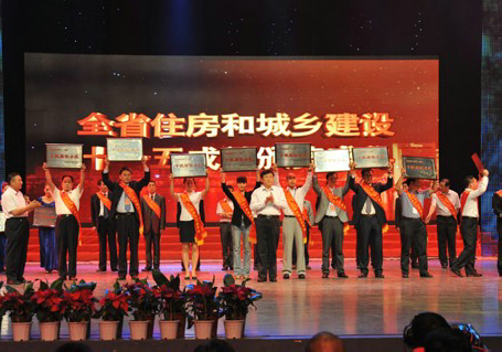 為更好地實(shí)現中原崛起、河南振興,展示十一五期間河南省住房和城鄉建設工作取得的突出成績(jì),省住房和城鄉建設廳組織了“十一五建設成就”評選活動(dòng)。該獎項評選是河南省第一次,范圍是全省十佳,申報條件要求高,經(jīng)過(guò)過(guò)層層選拔最終安陽(yáng)市人大政協(xié)活動(dòng)中心工程脫穎而出,被評為河南省首屆“十佳節能建筑”.2011525,河南省住房和城鄉建設系統十一五成就頒獎在鄭州舉行,河南省人大副主任劉新民、省政府副省長(cháng)張大衛等領(lǐng)導出席晚會(huì )并為獲獎單位頒獎。我公司董事長(cháng)謝海如及總工程師王蘭蘭出席了該頒獎晚會(huì )并領(lǐng)取了獎牌。