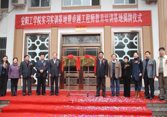 在一片祝福的掌聲中,歡慶的鞭炮聲中,孫院長(cháng)、高局長(cháng)為“安陽(yáng)工學(xué)院實(shí)習實(shí)訓基地”揭牌;王慶飛處長(cháng)、謝經(jīng)理為“安陽(yáng)工學(xué)院卓越工程師教育培訓基地”揭牌。揭牌儀式對雙方來(lái)說(shuō)是一次雙贏(yíng)的戰略之舉,它標志著(zhù)雙方合作邁向了新的高潮!