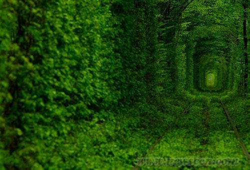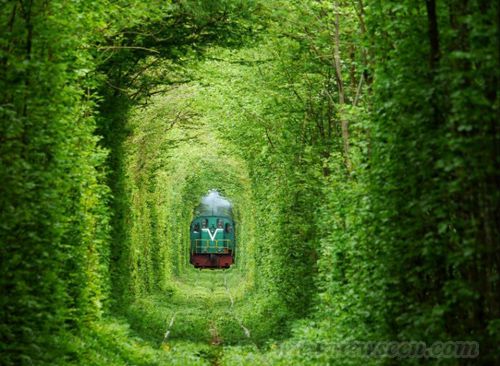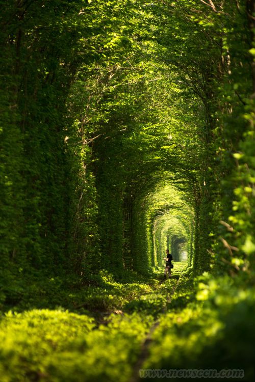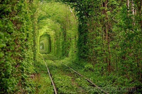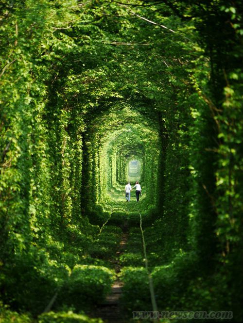 “愛(ài)的隧道”位于烏克蘭東部一個(gè)名叫克萊旺的小鎮附近,是一段長(cháng)約3公里的鐵路。但它與眾不同的地方在于,其四周是由樹(shù)木及綠色藤蔓圍繞而成,綠色植物構建成了拱形結構,將整條鐵路包裹起來(lái),變成了一條綠色的通道。