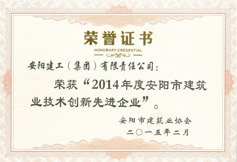 安陽(yáng)建工集團獲“2014年度安陽(yáng)市建筑業(yè)技術(shù)創(chuàng )新先進(jìn)企業(yè)”殊榮