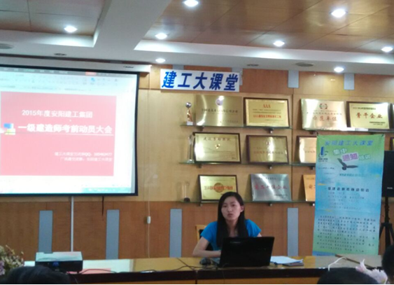 備戰一建,誓奪佳績(jì)。520日下午300建工大課堂——“2015年度一級建造師考前動(dòng)員大會(huì )”準時(shí)在公司三樓會(huì )議室召開(kāi)。公司董事長(cháng)、總經(jīng)理謝海如,副總盧麗娜以及新老考生參加了會(huì )議。