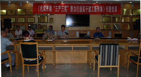 5月24日下午,公司三樓會(huì )議室,來(lái)自公司機關(guān)、項目部、分(子)公司中層以上領(lǐng)導干部、基層黨員代表認真聆聽(tīng)了公司黨委書(shū)記謝海如同志以《扎實(shí)開(kāi)展“三嚴三實(shí)”,努力打造實(shí)干建工新形象》為題的專(zhuān)題黨課。這也是公司今年開(kāi)展“三嚴三實(shí)”專(zhuān)題教育實(shí)施方案的要求。黨課由公司黨委副書(shū)記馬松林同志主持。