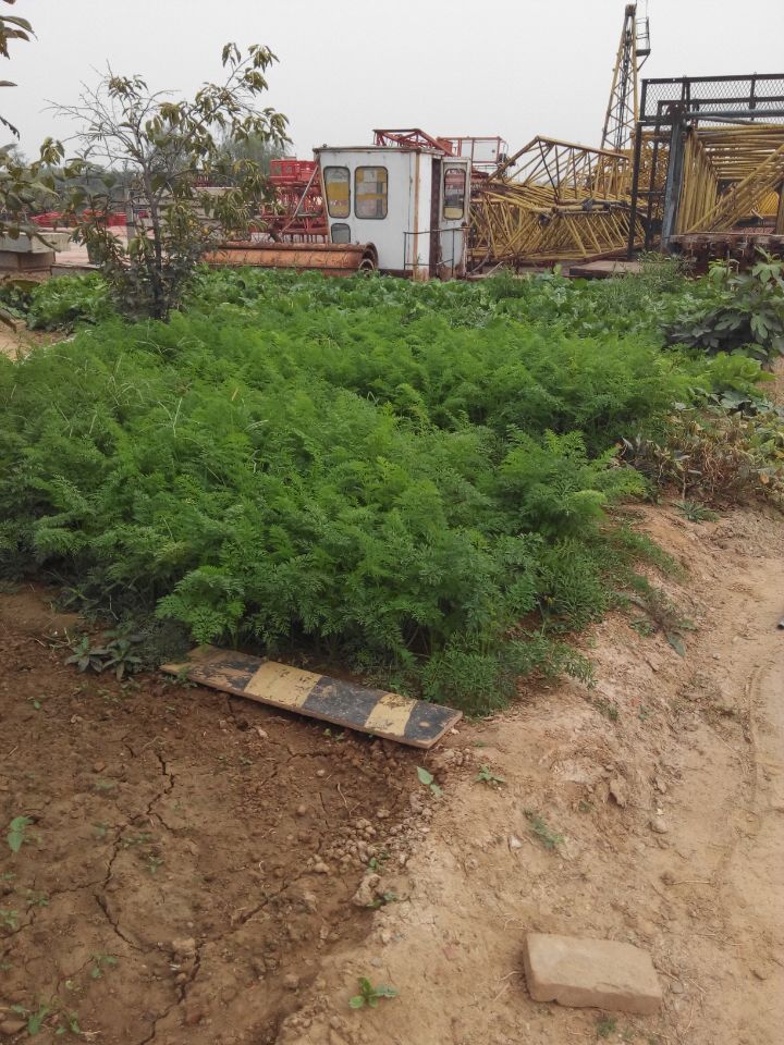 “你看我們這里的樹(shù)、車(chē)、房子,上面都是灰塵,只要有車(chē)過(guò),就像沙塵暴似的,天天如此,好不容易雨天來(lái)了沒(méi)沙塵暴了,“泥石流”又來(lái)了,鞋上全是泥”,說(shuō)話(huà)間,我們又來(lái)到了一片片菜地,“你看,這是我們的菜地,有蘿卜、白菜、豆角……”。采訪(fǎng)中我了解到,由于租賃中心地處郊區,特別偏遠,所以家住市區的員工中午就無(wú)法回家了,在單位做飯吃。但是地勢偏遠,買(mǎi)菜就成了一大問(wèn)題,再者這么多人每天的消耗量也挺大的,所以肖部長(cháng)就帶領(lǐng)大家在單位空閑地方種起了菜,自給自足。這讓我不禁想起了一句話(huà)“山不在高,有仙則名,水不在深,有龍則靈,斯是陋室,惟我德馨”。