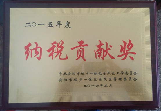 2016年2月15日,新春伊始,安陽(yáng)城鄉一體化示范區2016年度工作會(huì )議隆重召開(kāi),會(huì )上安陽(yáng)市政府副市長(cháng)唐獻泰、范區黨工委書(shū)記張寶香做出重要講話(huà),總結了過(guò)去一年的工作,深入分析當前形勢,表彰先進(jìn)集體和先進(jìn)個(gè)人,全面安排新的一年經(jīng)濟社會(huì )發(fā)展的任務(wù)措施,動(dòng)員全區上下進(jìn)一步統一思想,堅定信心,團結奮進(jìn),扎實(shí)苦干,為建設美好示范區而努力奮斗。我公司作為獲獎單位上臺領(lǐng)取了獎牌。會(huì )上黨工委、管委會(huì )領(lǐng)導同志對先進(jìn)單位、先進(jìn)工作者和納稅貢獻企業(yè)進(jìn)行頒獎表彰。
