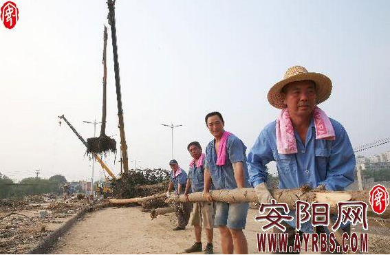 從22號至今天上午,共計4天,安陽(yáng)建工出動(dòng)防汛人員220余人次,吊車(chē)4部,發(fā)電機2臺,專(zhuān)用抓機1臺?,F場(chǎng)共清理河道障礙物近千方,其中包括大小樹(shù)木150余棵,雜草120余方。目前安陽(yáng)橋水流全面暢通,圓滿(mǎn)完成上級領(lǐng)導交代的任務(wù)。