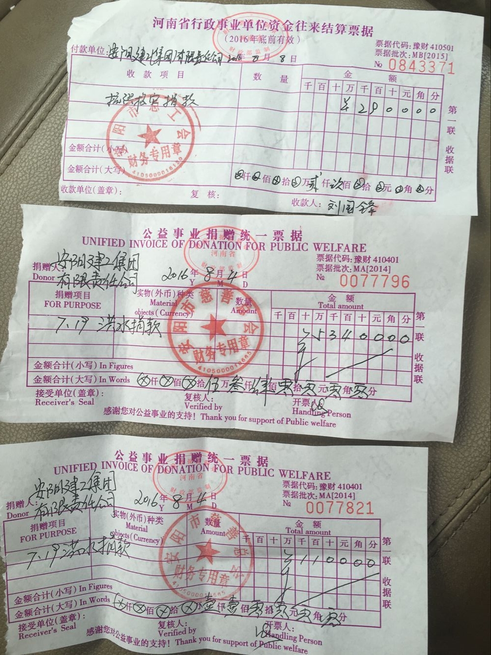 7月19日,我市遭遇歷史罕見(jiàn)強降雨過(guò)程,部分縣(市)區發(fā)生了嚴重的洪澇災害,為幫助受災的群眾重建家園,公司領(lǐng)導發(fā)出捐款倡議,在短短一天半時(shí)間里,辦公室共收到來(lái)自機關(guān)、分(子)公司、駐外項目共計452人的善款,金額達57400元。其中,包含7月28日,公司首先組織的12名勞模捐助的2900元善款,辦公室將這些善款全部上交市慈善總會(huì )。