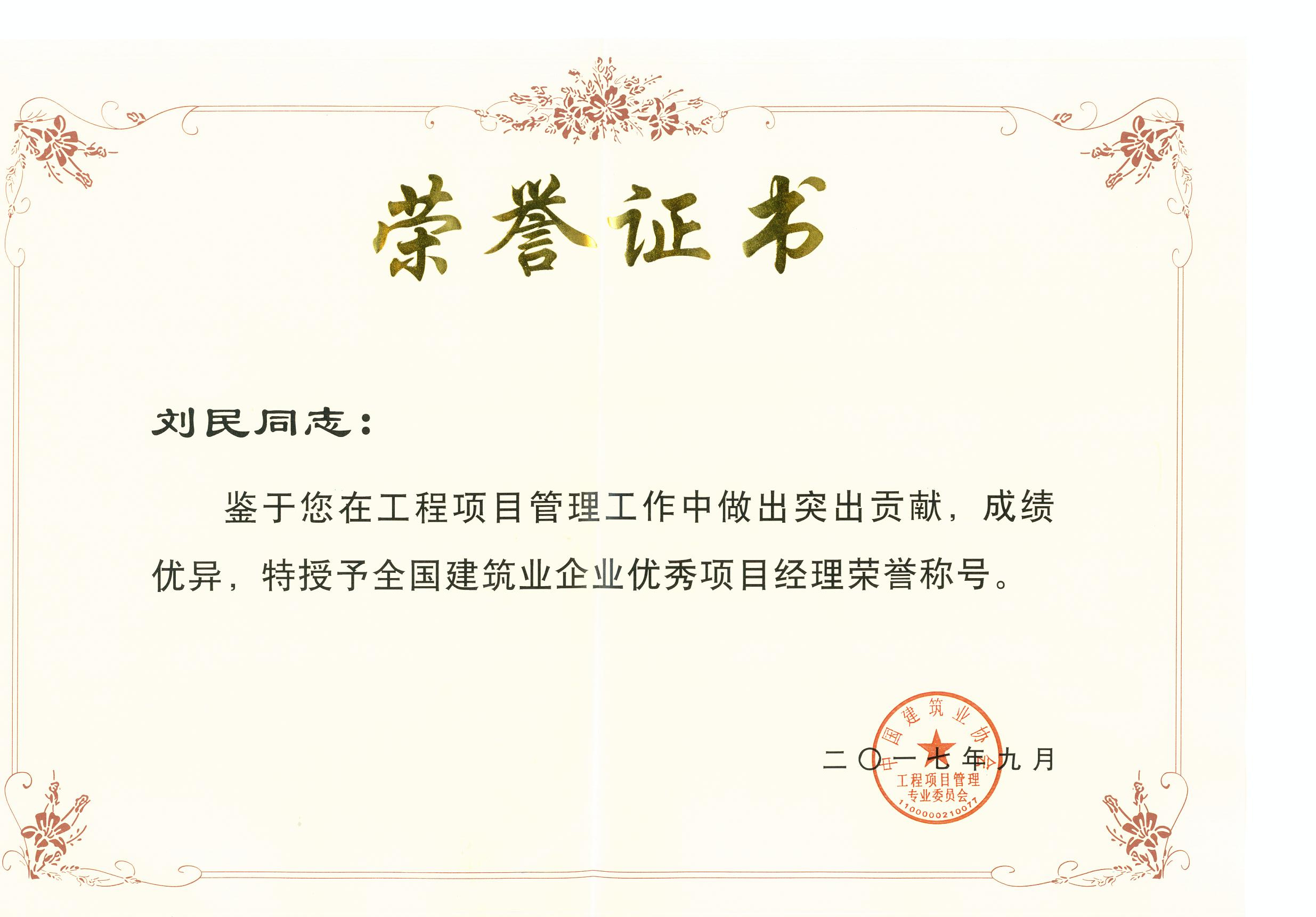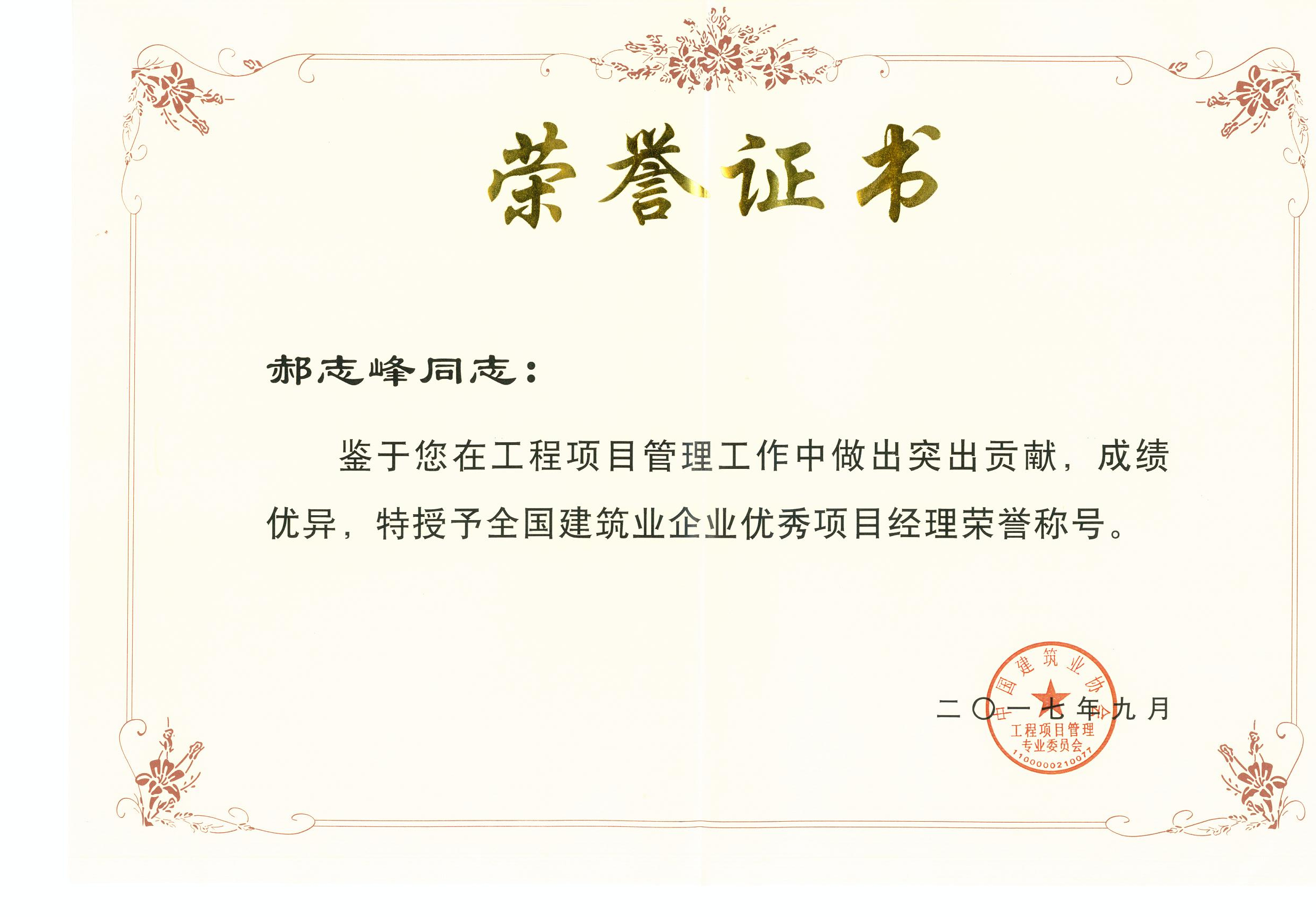 為全面、系統地總結弘揚我國建筑業(yè)工程項目管理取得的輝煌成就,進(jìn)一步激發(fā)和調動(dòng)廣大項目管理工作者的積極性與創(chuàng  )造性,不斷健全完善項目管理人才培育的激勵機制,積極促進(jìn)全行業(yè)營(yíng)造尊重人才、培養人才、用好人才的良好氛圍,中國建筑業(yè)協(xié)會(huì )結合紀念國務(wù)院五部委推廣“魯布革”工程管理經(jīng)驗30周年系列活動(dòng),對三十年來(lái)特別是近五年間在建設工程項目管理活動(dòng)中做出突出貢獻的項目經(jīng)理的先進(jìn)經(jīng)驗和事跡進(jìn)行宣傳和弘揚。我公司郝志峰、劉民兩位同志獲此殊榮, 希望公司所有項目經(jīng)理能向榜樣學(xué)習,接近榜樣,成為榜樣。