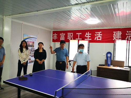 為推動(dòng)全市基層工會(huì )職工之家建設,6月10日上午,市總工會(huì )組織召開(kāi)全市基層工會(huì )職工之家建設工作現場(chǎng)會(huì )。市總工會(huì )黨組副書(shū)記、常務(wù)副主席曹保貴,市總工會(huì )黨組成員、副主席李希勤及各縣區工會(huì )、產(chǎn)業(yè)工會(huì )、基層工會(huì )領(lǐng)導蒞臨我公司海悅國際大廈項目部現場(chǎng)觀(guān)摩工會(huì )職工之家建設情況,集團公司董事長(cháng)謝海如、工會(huì )主席馬松林全程陪同。