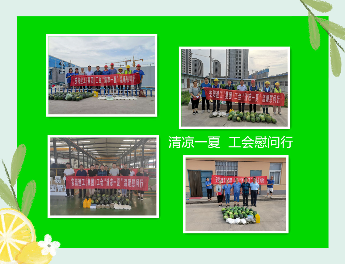 7月6日一早,清涼慰問(wèn)品在公司裝車(chē)后,在公司安全部方部長(cháng)陪同下,我們的慰問(wèn)隊就出發(fā)了,一行去了香山甲第、海悅國際、海悅名郡、湯陰濕地公園等共計在建項目20個(gè),分公司10個(gè),送去的綠豆、白糖、西瓜,不僅為一線(xiàn)員工帶去清涼,更是滿(mǎn)載著(zhù)集團公司對一線(xiàn)員工的關(guān)懷和掛念,公司工會(huì )馬主席每到一處,都親切的和員工們交談,了解工程進(jìn)度情況,詢(xún)問(wèn)了他們的工作生活情況, 叮囑大家高溫天氣,一定要注重自身安全和自身防護。