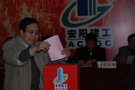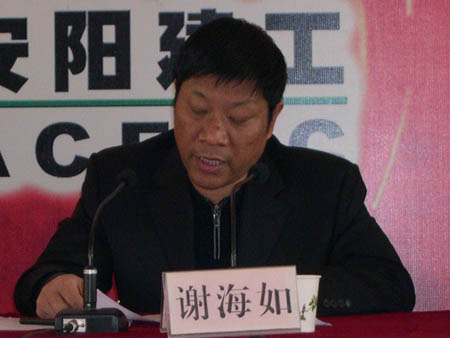 |      2008年安陽(yáng)建工集團第一次股東會(huì )會(huì )場(chǎng) |   董事長(cháng)謝海如作第一屆董事會(huì )工作報告 |