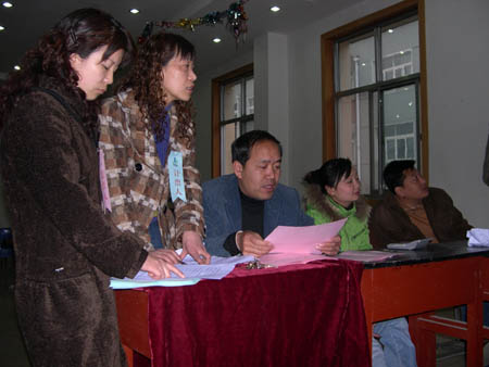 股東分組對兩個(gè)報告進(jìn)行了熱烈討論,董事長(cháng)謝海如代表董事會(huì )對股東提出的問(wèn)題進(jìn)行了詳細解答。股東表決通過(guò)了兩個(gè)工作報告,按程序審議通過(guò)了《關(guān)于修改公司章程的議案》、《關(guān)于公司董事會(huì )換屆選舉的議案》、《關(guān)于公司監事?lián)Q屆選舉的議案》,宣讀并通過(guò)董事、監事選舉辦法,唱票人、計票人、監票人名單。大會(huì )表決通過(guò)了2008年第一次股東會(huì )決議。