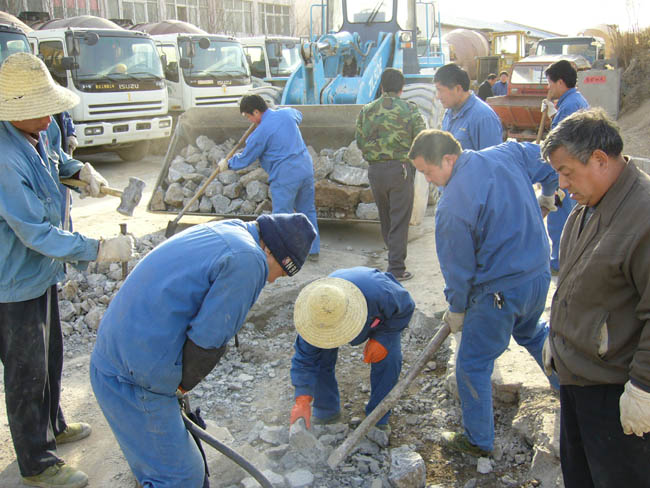 2004年初,六號車(chē)遠征少洛(少林寺——鄭州)高速載譽(yù)歸來(lái),主車(chē)司機崔國慶看著(zhù)整修過(guò)的罐體,心中有些不悅,原來(lái),修補攪拌葉片時(shí)電焊把罐體上的漆燒掉了幾片,俗話(huà)說(shuō)的好:汽車(chē)的頭,司機的臉,這不僅影響了車(chē)的整體美,而且有悖于公司“攪拌運輸車(chē)是流動(dòng)的廣告,是公司的戶(hù)外形象,是古城安陽(yáng)街頭一道亮麗的風(fēng)景線(xiàn)”的要求。怎么辦?崔國慶二話(huà)沒(méi)說(shuō),從倉庫領(lǐng)出手提除銹機,打磨,除銹,刷防銹漆。司機班長(cháng)楚樹(shù)林也熱情幫忙,兩人拉氣泵,自己動(dòng)手當起油工。剛開(kāi)始沒(méi)有經(jīng)驗,噴出的色澤、薄厚不一,但很快就找到了竅門(mén),經(jīng)過(guò)幾天忙碌,六號車(chē)變的如同新車(chē)。隨后,裝載機司機吳愛(ài)國也把裝40重新噴漆。泵工班維修混凝土泵已稱(chēng)得上專(zhuān)家,馬士兵,李建民,孟慶印,張志秀,楊坤個(gè)個(gè)是一把好手,精心保養與維修,使2號、3號泵使用至今從沒(méi)換過(guò)大件,受到拖泵生產(chǎn)廠(chǎng)家售后人員的交口稱(chēng)贊。2004年底,攪拌主機出現漏漿,其他部位分別出現不同程度的磨損,生產(chǎn)技術(shù)部決定:以我為主,適當聘請外部專(zhuān)業(yè)人員。機修、泵工、生產(chǎn)、司機班員工以及管理人員全力以赴,并且根據多年使用的經(jīng)驗,對不很合理、問(wèn)題多發(fā)部位進(jìn)行整改,收效甚大。從此,利用節假日維修主機成了不成文的規定。2007年春節前后近40天時(shí)間,公司對攪拌主機、管理系統進(jìn)行大規模改造,并新增骨料倉、粉料倉各一座,其中有一半多的工作是公司員工動(dòng)手做的。