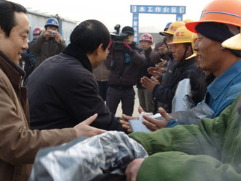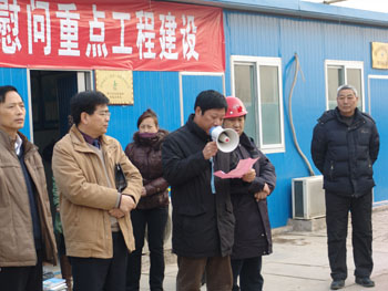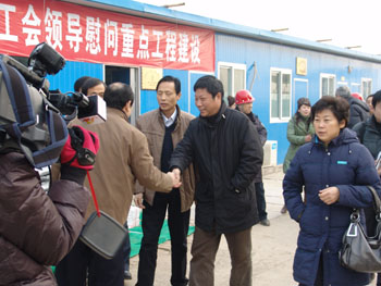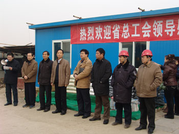 公司工會(huì )主席馬松林同志主持了儀式,集團公司總經(jīng)理謝海如同志致歡迎詞,市人大副主任、市總工會(huì )主席聶孟磊出席了送溫暖儀式。電子信息學(xué)校項目經(jīng)理王振東作了表態(tài)發(fā)言,一定會(huì )將工會(huì )領(lǐng)導的關(guān)懷轉化為工作的動(dòng)力,搞好安全生產(chǎn),保質(zhì)保量完成工程建設。